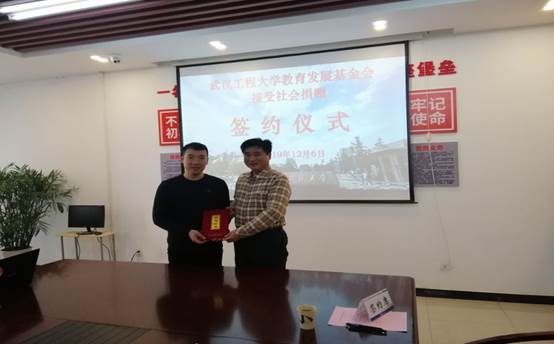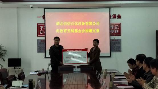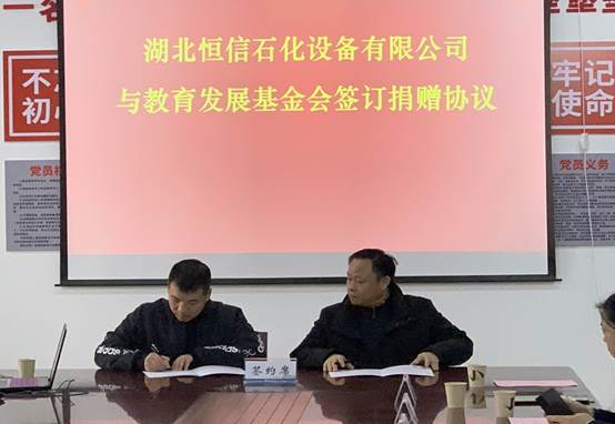 基金会秘书长邓新洲代表基金会与湖北恒信石化设备有限公司总经理刘毅签订了捐赠协议。