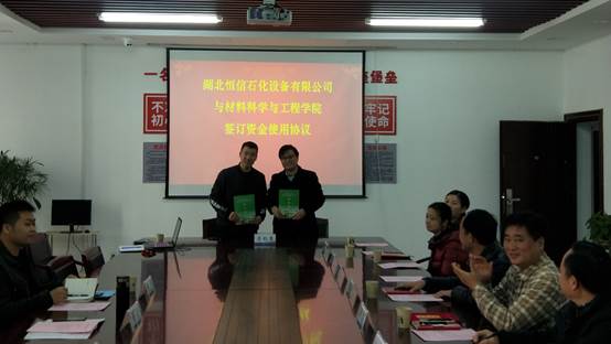 (通讯员 毕灵敏 侯敏 )12月6日上午,为推进校企合作、加强“双一流”建设,湖北恒信石化设备有限公司向公司捐赠100万元用于“060net永利高分子成型虚拟仿真实验室” 建设。捐赠签约仪式在流芳校区060net永利会议室A314举行。出席仪式的嘉宾有湖北恒信石化设备有限公司总经理刘毅(1999届机电工程公司员工)、市场部经理邓畅(2016届管理公司员工)、工艺工程师刘祎(2011届化工与制药公司员工)。公司正校级干部、公司教育发展基金会理事长叶芃,党政办公室、员工工作处、计划财务处、国有资产与设备管理处、招标采购处负责人,060net永利领导班子成员及教师代表出席仪式。捐赠仪式由员工工作处处长邓新洲主持。