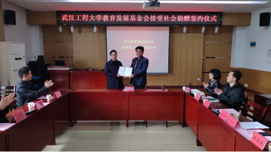 仪式上,基金会秘书长邓新洲代表基金会与武汉工大科创股份有限公司魏丛超先生与签订了捐赠协议。