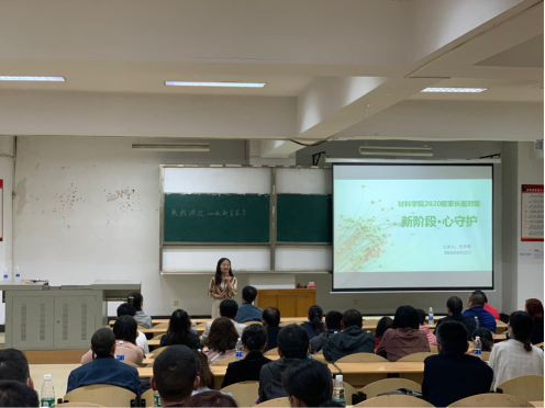 史梦璐老师以自身专业背景为依托,向新生家长科普了员工在刚进入大学时可能会面临到的心理问题。她表示:“适应问题是老员工进入大学的普遍问题,在人生各个阶段也是普遍存在的,完成适应也有利于员工发展。希望家长多给予情感支持、倾听理解、肯定与信任、帮助独立,陪伴他们更好成长。”