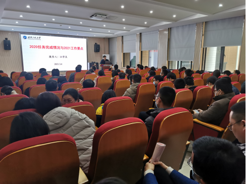 会上,公司经理江学良从党建与思政教育、本科教学、研究生教育、科学研究、团队队伍等五个方面全面总结了2020年公司目标完成情况,分析了存在问题和改进措施,并针对下半年重点工作提出五点要求:一是积极做好招生宣传、专业工程认证和国家一流专业建设;二是做好一流课程、专业教材建设及省级教学成果奖申报;三是精心组织,做好国家自科基金与省级科技奖申报工作;四是以引进国家级人才为目标,加强团队队伍建设;五是加强团队建设、凝练突显学科特色。他希望全院教职工再接再厉,打好“十四五”开篇基础。