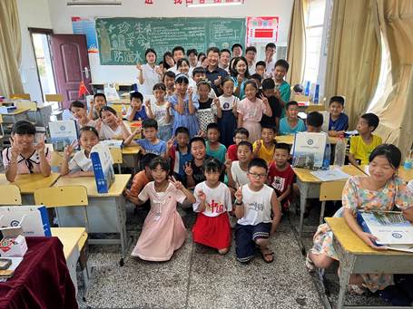 王涛表示,感谢赤壁中学提供的社会实践的机会、小朋友们对支教成员的信任,以及在此支教的同学们。他指出,社会实践是光,有三个功能,一是照亮自己、照亮他人,照亮并温暖孩子们的世界,并为孩子们指引航向,影响他们的一生,对参与支教的员工而言,是开阔视野、躬身实践的好机会;二是理解他人、悦纳自己,支教成员更能体会为师不易,同时学会与自己和解;三是教育他人、成就自己,将自己的世界观人生观传递给小朋友的同时,自己也在进步成长。最后,王涛说道,希望这道光继续照耀赤壁中学,将这份八年的爱接续传承下去。