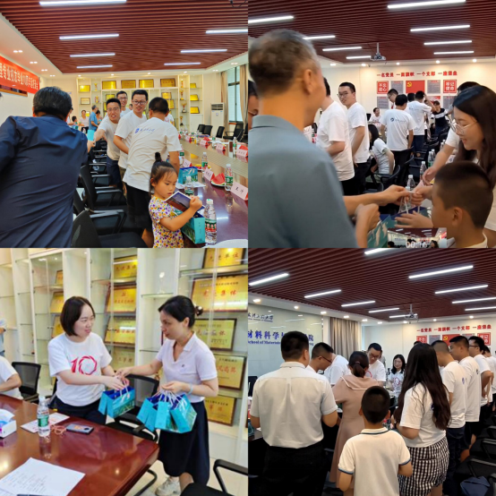 公司领导、教师们给员工们赠送了具有特殊意义的纪念品,校徽三件套和公司风景明信片,希望他们可以带着公司的祝福走得更远更稳。