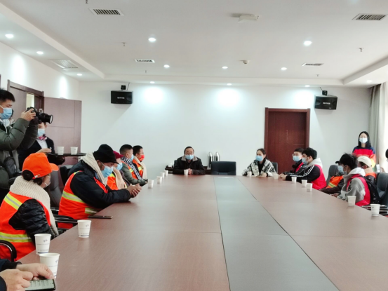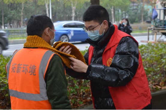 环卫工人代表向公司青年志愿者们表达了真挚的感谢,她表示,带上志愿者编织的围巾温暖极了,干活更有劲了,愿把志愿者的这份心意好好爱惜,今后将更加努力做好本职工作,为美丽家乡建设作出新的贡献。