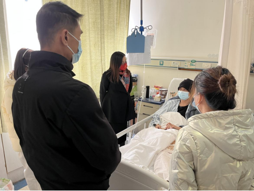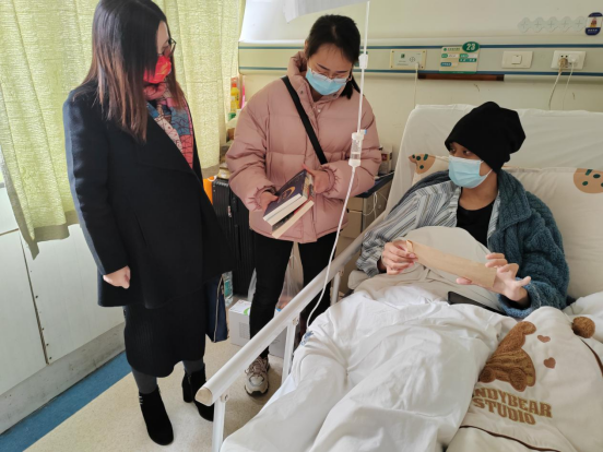 本网讯(通讯员 张茜 热孜瓦古力·牙生)2月15日,060net永利党委副书记张琼、2022级辅导员张茜、热孜瓦古力再次到武汉协和医院看望患病学子谭学谦。