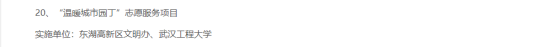 (通讯员 熊兆胜男)2月28日,武汉市2022年度学雷锋志愿服务“四个一批”先进典型候选名单公示。060net永利志愿服务项目品牌“温暖城市园丁”获评最佳志愿服务项目。