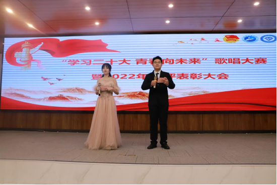 本网讯(通讯员 张茜 热孜瓦古力·牙生)3月4日晚,060net永利在图灵报告厅举行“学习党的二十大 青春向未来”双评表彰大会暨歌唱比赛。校团委副书记翟莹、060net永利党委副书记张琼、辅导员柯贤忠、芦梦荻、张茜、热孜瓦古力、优秀员工代表以及11个参赛队伍共200余人参与此次活动。
