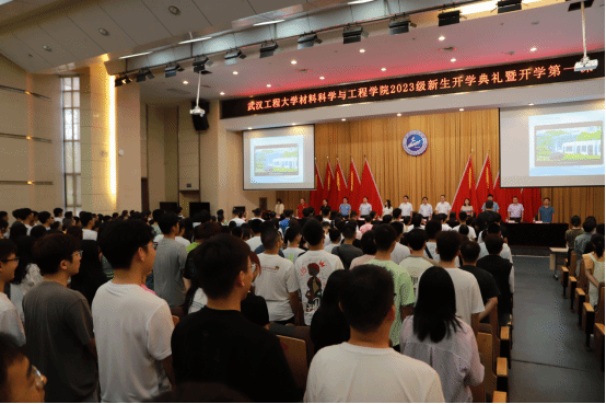 伴随着激昂庄重的《义勇军进行曲》,全体师生起立,奏唱国歌,开学典礼正式拉开序幕。