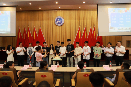 典礼上公司还为我们的“小萌新”们准备了一个小惊喜:为9月份生日的19名小寿星精心策划了一场集体生日会,王涛为小寿星代表赠送了《习近平七年知青岁月》以及精美的钢笔,勉励同学们多读书多学习,珍惜四年大学时光,尽力绽放光彩,收获无悔青春。大家齐唱生日歌、许下生日愿望,会场洋溢着着欢乐喜庆,同学们都被这突然的惊喜感动。