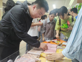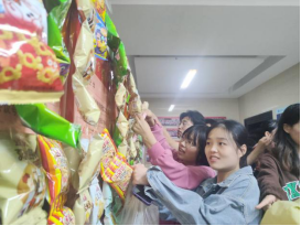 张琼向同学们介绍了此次准备的小礼品,每位同学都能随机抽取一只盲盒笔,在盒子上印有“心想事成”“学业有成”“鹏程万里”“长风破浪”“旗开得胜”“花开如梦”等祝福语,这是公司对同学们最美好的期盼,希望大家都能在奋斗中完成自己的梦想,领取完盲盒笔的同学们可以在零食墙上挑选自己喜欢的零食。同学们对公司准备的小惊喜表示非常感动,